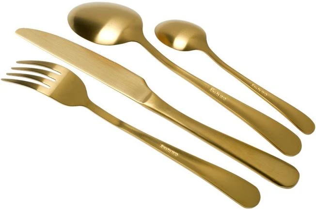 Make a statement with this festive golden cutlery set. Made from 18/0 stainless steel with a thin PVD (Physical Vapor Deposition) titanium coating.