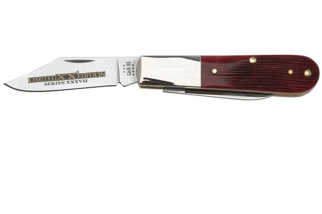 The Case Barlow is a traditional pocket knife with a classic Barlow shape. It’s part of the Limited XX Edition series, this being the 37th. This series contains five pocket knives with the Old Red Bone Barnboard Jig finish. This particular version has two blades: a clip point of 6.2 cm, and a drop point of 5.2 cm. Both blades are enhanced with their own slipjoint mechanism.