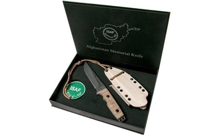 The Fox Knives Afghanistan Memorial Knife AMK-279 is a cool survival knife, designed by Hill Knives Holland. Specifically designed in honour of the ISAF-mission in Afghanistan. Hill knives always produced a lot of knives for Dutch soldiers. It is therefore not that surprising that many of them carry this design in their standard gear. This version made by Fox has made the design available to all.