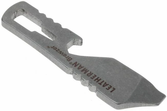 Small pocket tool with bottle opener and crowbar/screwdriver. The ‘ hook ‘ on the screwdriver can be used as box opener. It may not be suitable for someone who daily opens many boxes, but for occasional use, it will do just fine. Additionally, this tool features an open end wrench and a key for oxygen bottles. The ridges provide plenty of grip. It’s funny that Leatherman themselves only mentions two tools for the Brewzer: the crowbar and bottle opener.