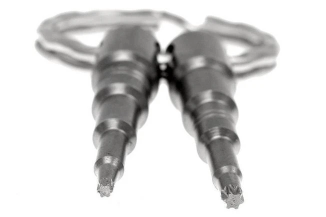 These LionSteel keychains are convenient screwdrivers in torx sizes T6 and T8. These are probably the most common in pocket knives. This set is also included with the default titanium and carbon LionSteel TRE Three Rapid Exchange pocket knives.