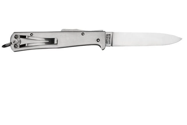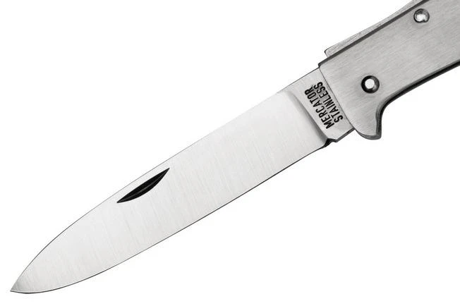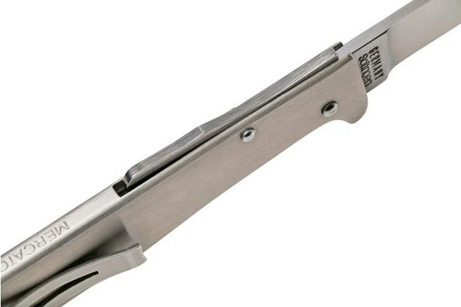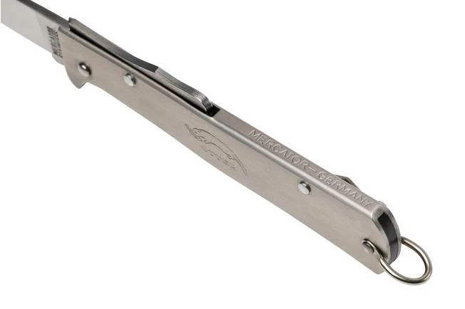 The Otter Mercator 10-836 RG R is a large pocket knife. The handle is made from stainless steel, the blade from 1.4034 stainless steel. This Mercator is enhanced with a pocket clip. The lanyard eye enables you to easily add a lanyard.