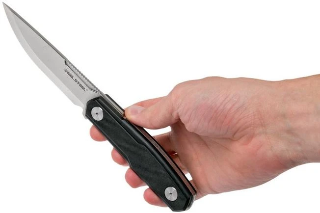 The Real Steel Bushcraft Zenith Scandi 3760 is a solid and cool pocket knife, designed by Ostap Hel. He lifted the concept of a solid bushcraft knife with scandi-edge to a modern level. The Bushcraft Zenith has a royal blade and a hand-filling handle. At first glance the handle might look a bit angular to feel comfortable in hand. However, when you look at it closely you notice how well thought-out this design actually is.