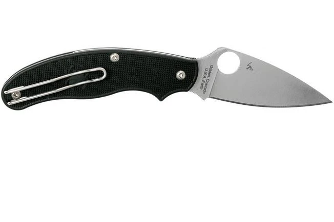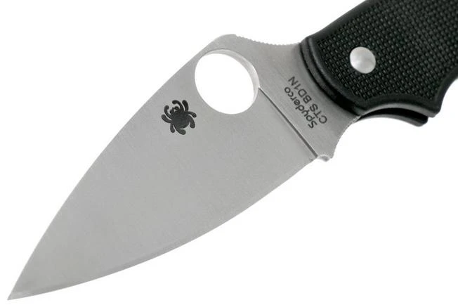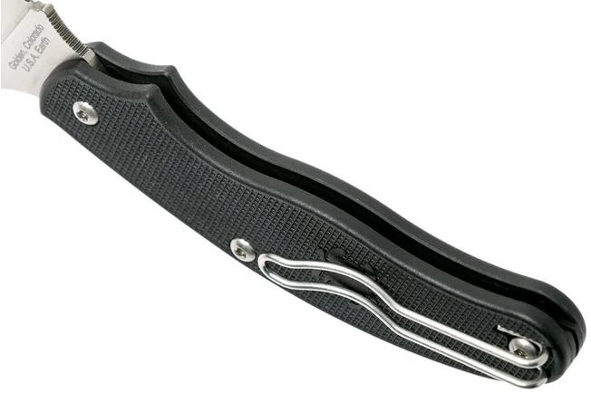 The Spyderco UK Pen Knife C94BK is a lightweight pocket knife, with a slipjoint lock. The name of this ‘Pen Knife’ has the prefix ‘UK’ for a reason. This pocket knife was namely produced to adhere to all UK knife laws and regulations. This means that it cannot contain a lock and cannot be too big. Within these limits Spyderco was able to create a stunning knife. The lack of a lock is compensated by the clear click when the knife opens. Halfway through closing the knife you once again hear a clear click. The index finger falls into the curve of the blade and handle. If the blade accidentally closes it is stopped by your finger which decreases the chances of accidents.