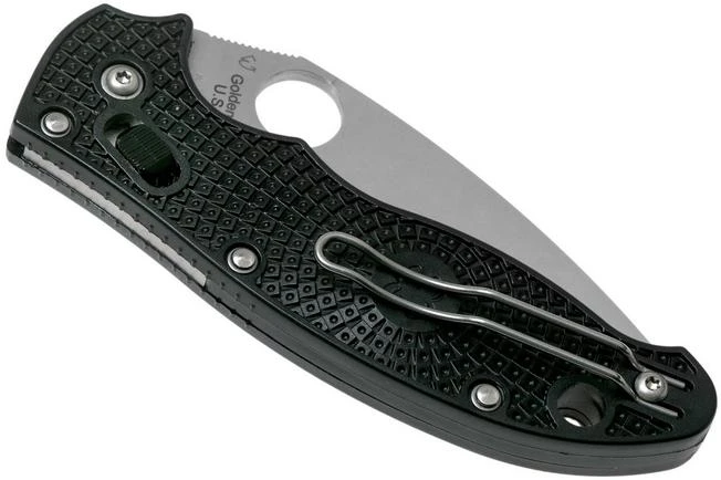 The Spyderco Manix 2 has been one of the most successful models from the Spyderco collection for some time now. This version of the Manix 2 is the one that raises the bar a little higher for light-weight pocket knives. The handle on this knife is made from FRCP. That is a light-weight glass reinforced polymer. As a result the handle weighs next to nothing, but isn’t any less strong. The CTS-BD1N steel blade has been enhanced with a full-flat-grind with a stonewashed finish. When opened the blade is locked by the solid ball bearing lock. A user-friendly lock that, at the same time, ensures that opening and closing this pocket knife goes smoothly.