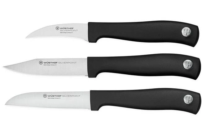 The Wüsthof Silverpoint 3-piece peeling knife set is comprised of a vegetable knife, a peeling knife and a turning knife. Perfect for all small peeling and cutting tasks in the kitchen.
