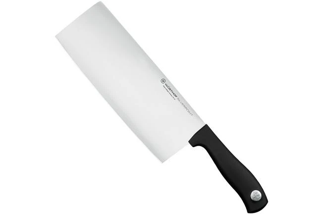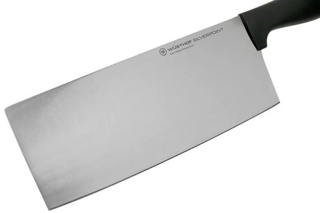 The Wüsthof Silverpoint Chinese chef’s knife 20 cm might look like a Chinese cleaver, it is not! The knife is thinner than a cleaver and only meant to cut herbs and vegetables. Because of the height of the blade you can easily guide the knife with your fingers when cutting vegetables and herbs, and scoop them up.